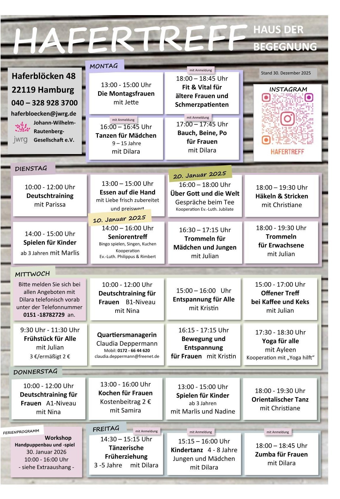 Regelmäßige Termine im Hafertreff: